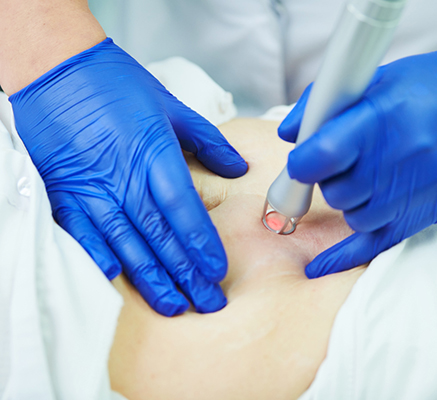 Lasers: Lasers are a part of non surgical scar reduction technique. Our state of art CO2 laser helps in scar resurfacing and reduction. Q switched NdYAG laser helps in dealing with hyper-pigmented scars. They have very less to almost no down time.